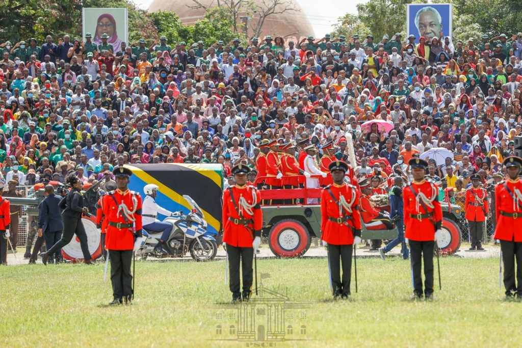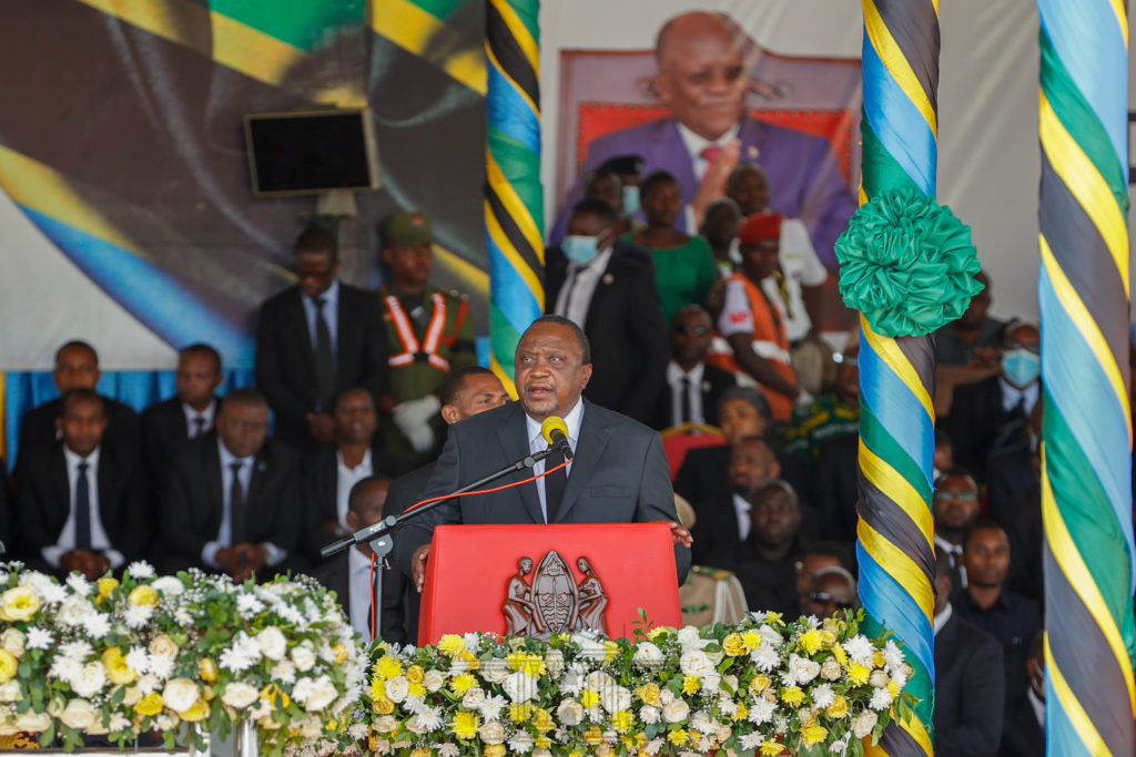 DODOMA, Tanzania, Mar 22 – President Uhuru Kenyatta joined thousands of Tanzanians and visiting leaders, among them eight other African Heads of State, at Jamhuri Stadium in Dodoma on Monday for the State Funeral of former President John Pombe Joseph Magufuli.